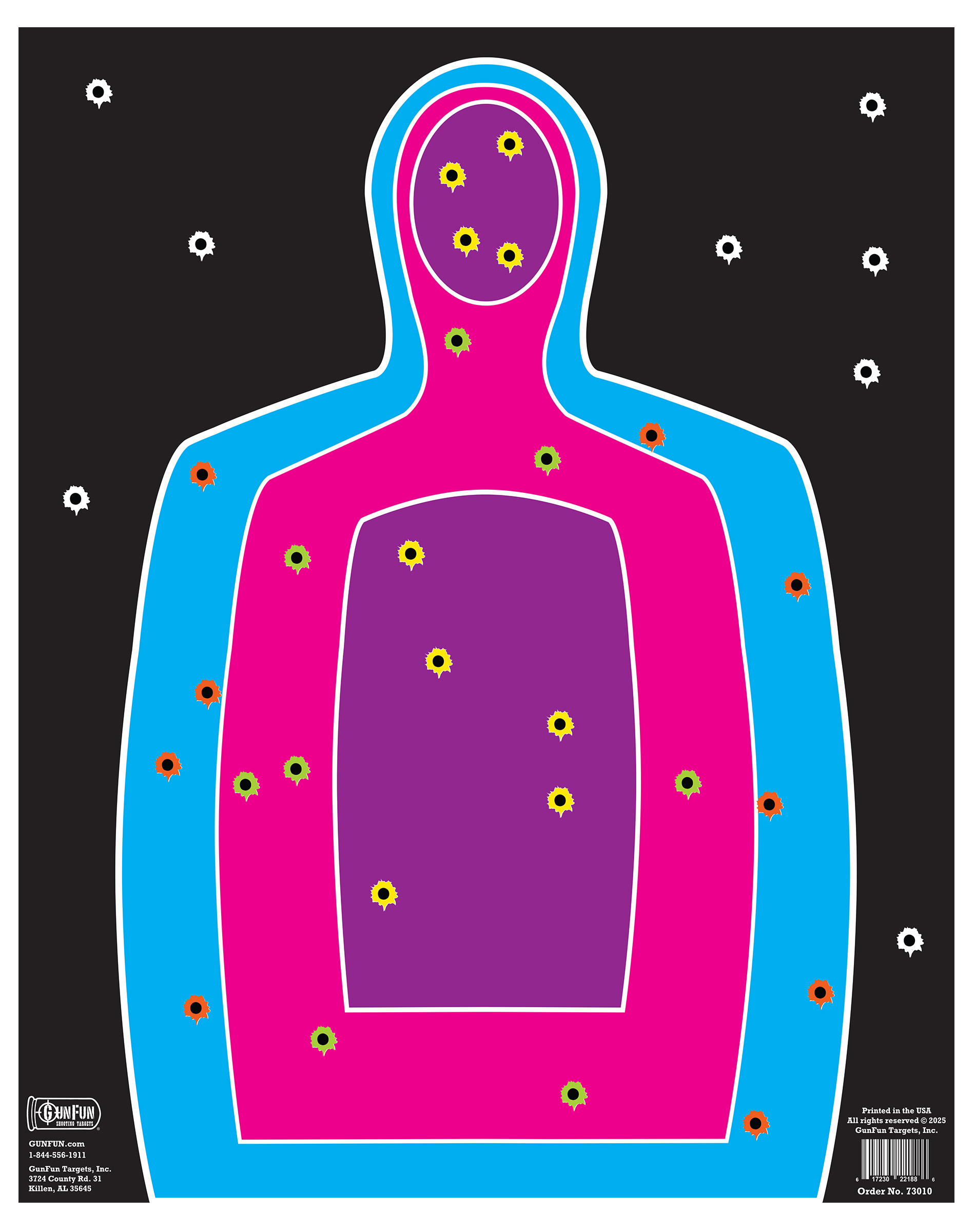 Splatter Silhouette – Splatter targets are here! This paper shooting target features a non-humanoid silhouette. Hits will reveal a new color, making it easy to track your shots.